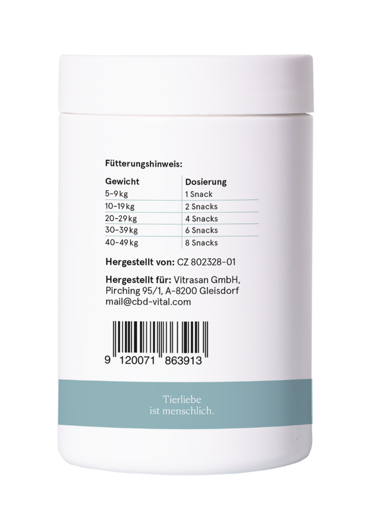 Die CBD VITAL Gelenke plus Snacks sind keine herkömmlichen Leckerlis, sondern eine einzigartige Kombination ausgewählter Inhaltsstoffe zur gezielten Unterstützung der Beweglichkeit unserer Vierbeiner. Das in Hundeleckerlis enthaltene CBD stammt aus natürlichem Hanfmehl und wird mit gelenksaffinen Nährstoffen kombiniert. Kurkuma, Glucosamin, Chondroitin, Weihrauch sowie MSM unterstützen den Erhalt der Gelenke sowie des allgemeinen Wohlbefindens.