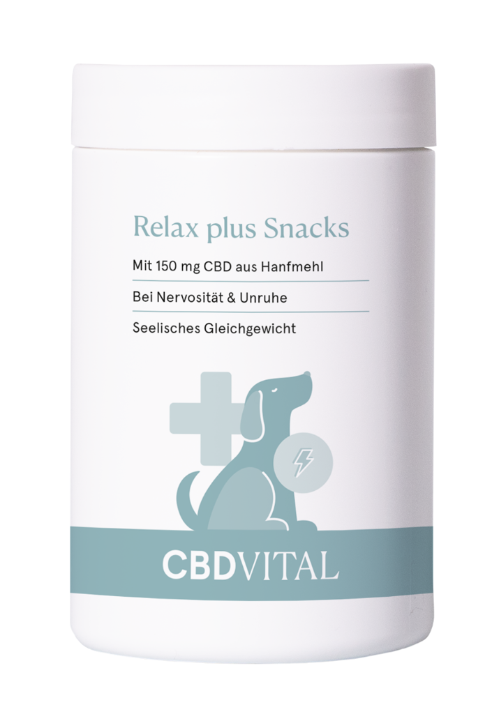 Die CBD VITAL Relax plus Snacks sind ein spezieller Komplex mit CBD aus Hanfmehl, Kamille, Rosenwurz und Melisse. Die ausgewählten, pflanzlich erprobten Inhaltsstoffe sorgen für mehr Ausgeglichenheit und Aufmerksamkeit im Hundealltag. Damit unvorhergesehene und stressige Situationen in Zukunft besser bewältigt werden können. Der natürliche Funktionssnack mit Cannabidiol ist vielseitig einsetzbar – für zu Hause, unterwegs oder auf Reisen. Die Leckerlis sind frei von Chemie und künstlichen Inhaltsstoffen. In einer Dose sind 60 CBD Leckerlies enthalten, mit insgesamt 150 mg CBD. Helfen Sie Ihrem Hund, stressige Situationen besser zu bewältigen und belohnen Sie Ausgeglichenheit in Stresssituationen.